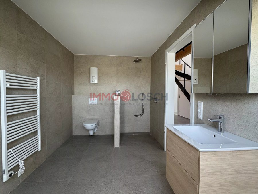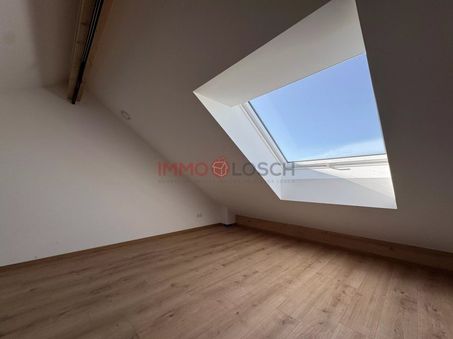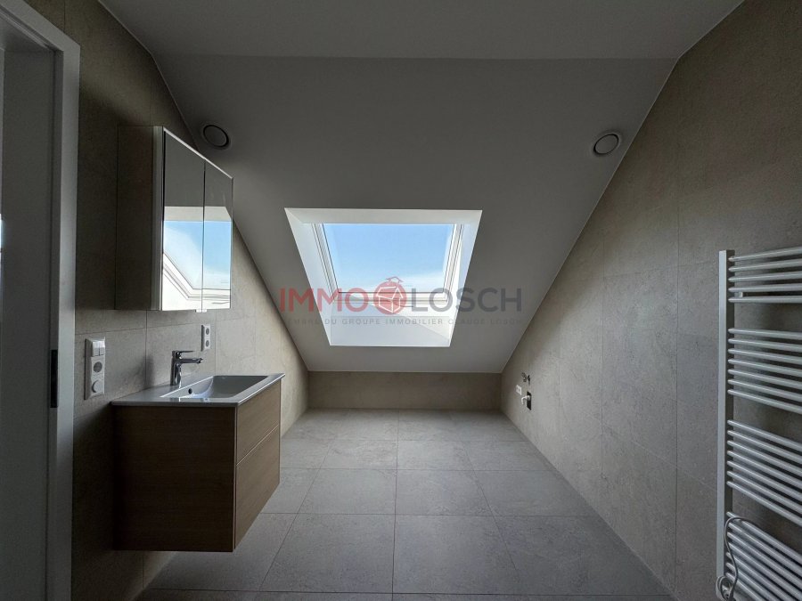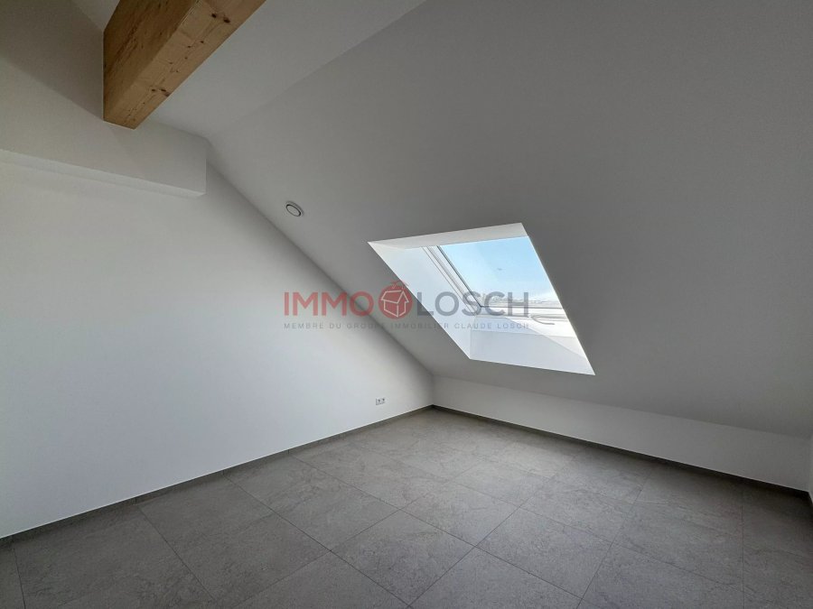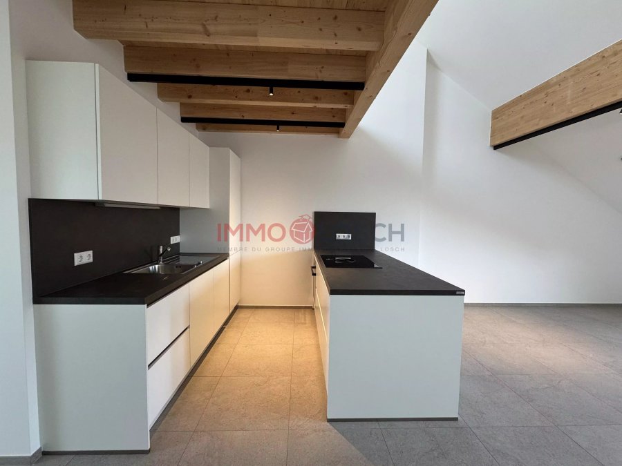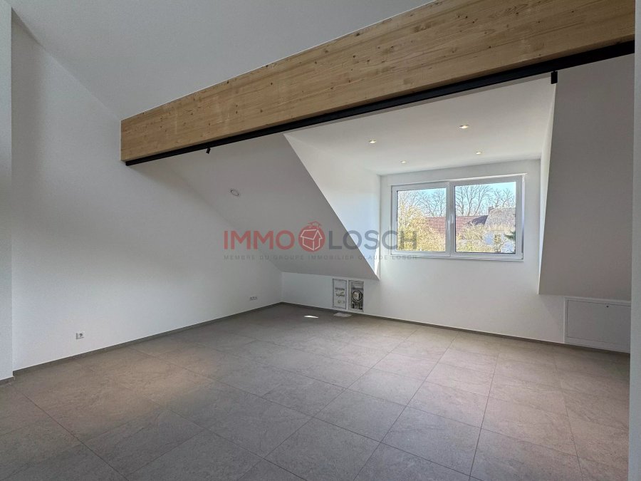 Immo Losch offers to rent a beautiful modern 79.89 m² apartment in Olm, offering optimized living space thanks to a mezzanine that can be used as a bedroom, in a brand new building.