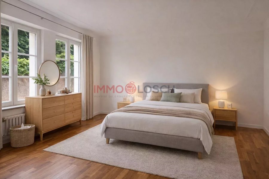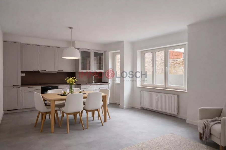 Immo Losch offers you this magnificent apartment, completely renovated in 2025, located on the first floor of a quiet, well-maintained residence in Echternach, offering an ideal living environment for a family.