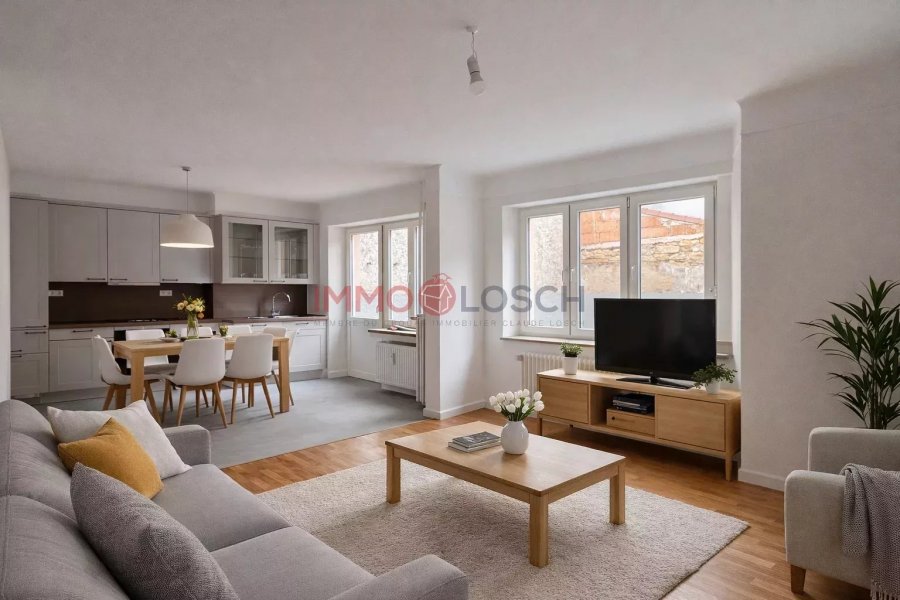Appartement familial rénové avec grande terrasse à vendre à Echternach – 102 m² habitablesImmo Losch vous propose ce magnifique appartement entièrement rénové en 2025, situé au rez-de-chaussée d’une résidence calme et bien entretenue à Echternach, offrant un cadre de vie idéal pour une famille.