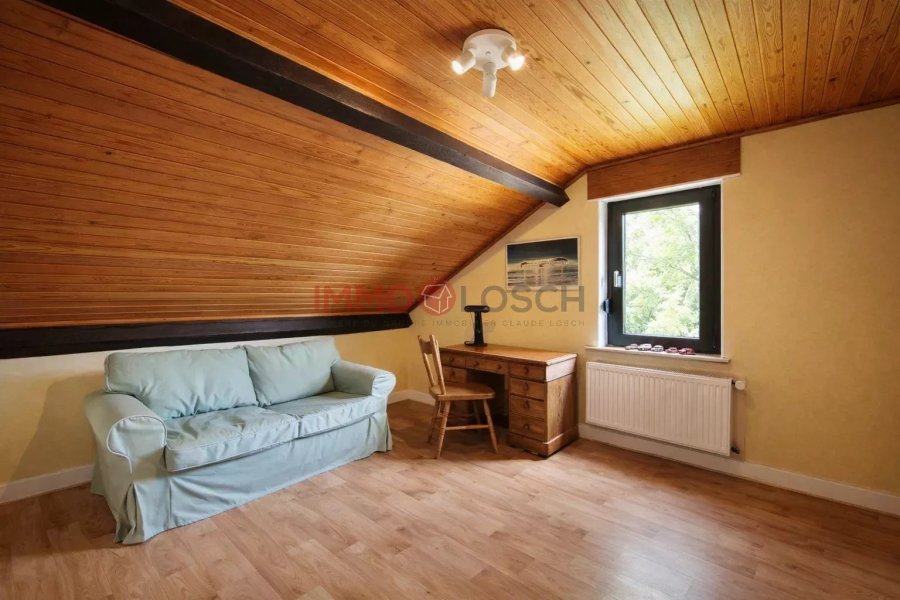 Beschreiwung vun der Immobilie Dëst schéint al Haus stécht duerch seng rout Zillenfassad eraus, déi et en authentëschen Charme gëtt. Et steet op engem Grondstéck vun 3,36 Aker a bitt eng Wunnfläch vun ongeféier 103 m². !!Immobilie ënner engem laangfristege Loyer!!