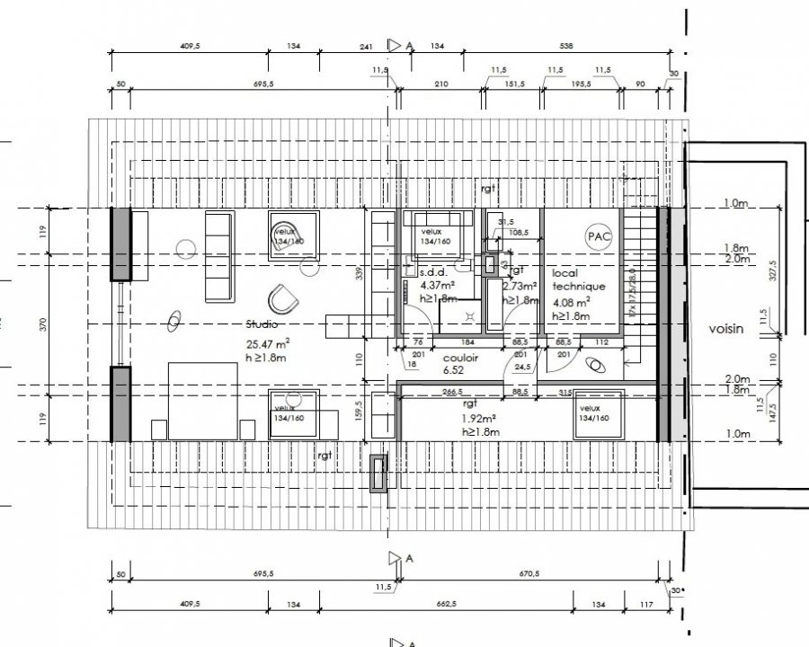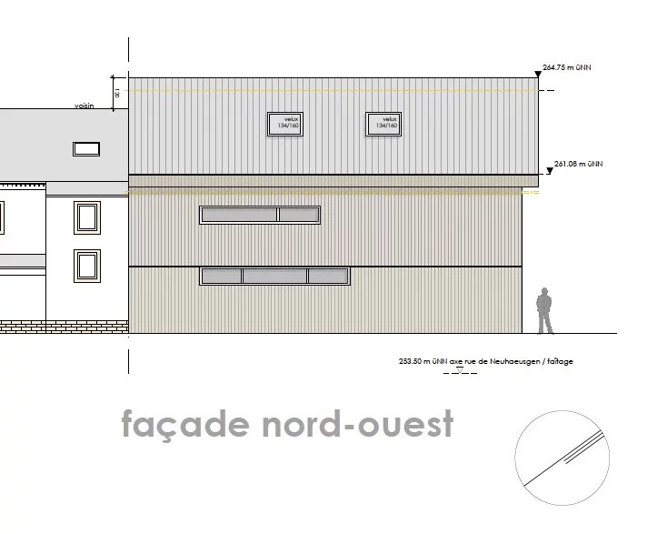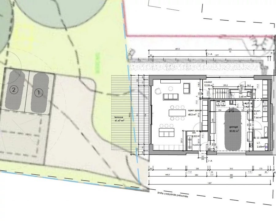 A new building could be envisaged, with a living area of 203 m², including ±60 m² for an integrated apartment.